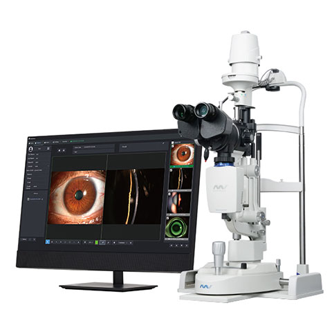 眼の中にある水晶体、並びに、前房(角膜から水晶体までの間の水に満たされた空間)、角膜(黒目)に異常がないか調べる検査です。角膜(黒目)に真正面からライトを当てると、表面状態しか観察できず、角膜より奥にある水晶体の状態はわかりません。そこで、斜めから樅に細いライトを当てることで、角膜と水晶体でライトがあたった部分がずれて観察でき、それぞれを立体的に確認することができます。角膜と水晶体の距離(前房深度)、角膜の厚み、水晶体の厚み、水晶体の色、水晶体の濁り具合等が、斜めからの細い光(スリット光)によって映し出されます。水晶体の濁り具合は白内障の進行具合、白内障のタイプ分類の指標となります。